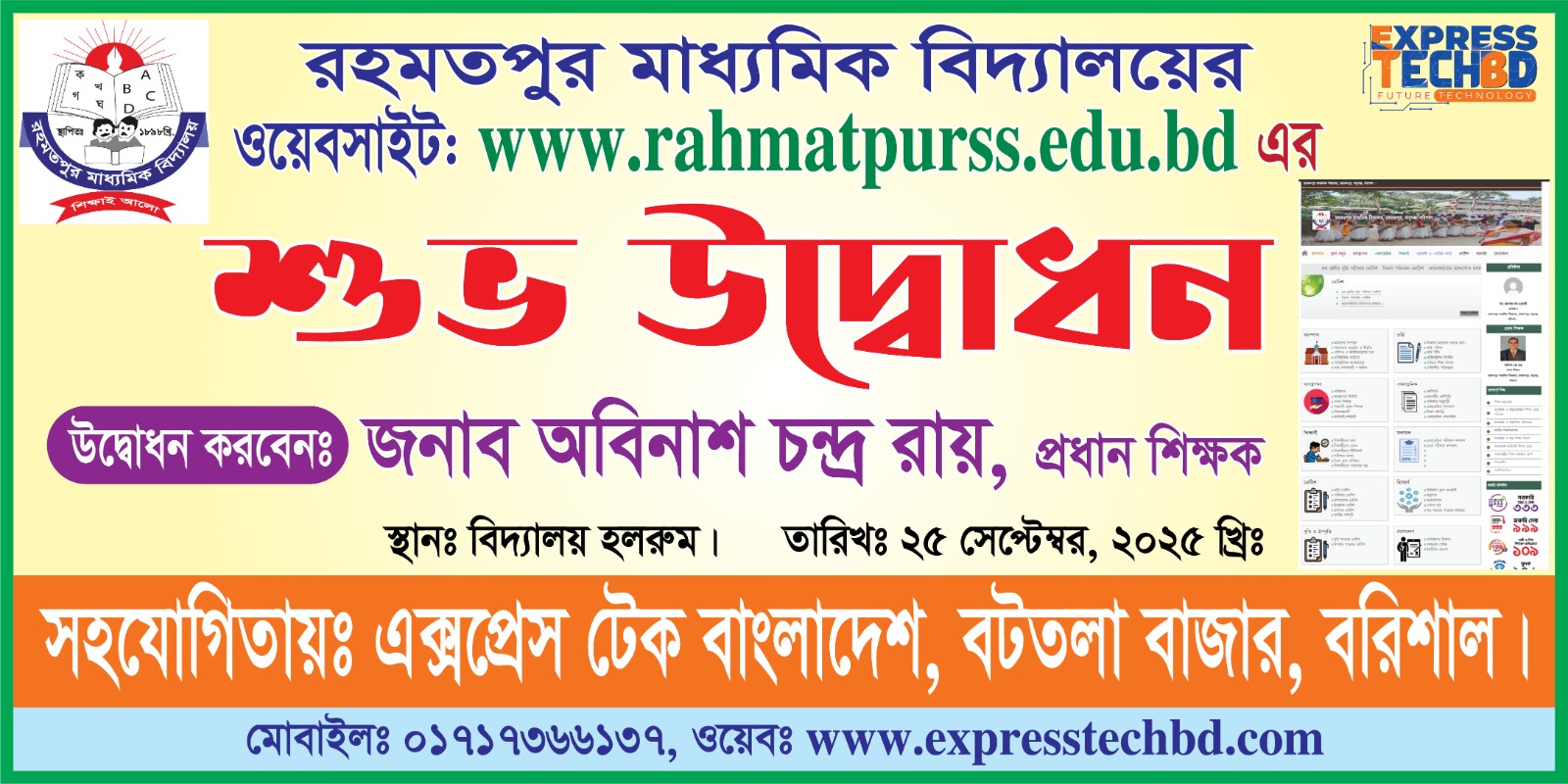 রহমতপুর মাধ্যমিক বিদ্যালয় এর ওয়েবসাইট www.rahmatpurss.edu.bd এর শুভ উদ্বোধন । |