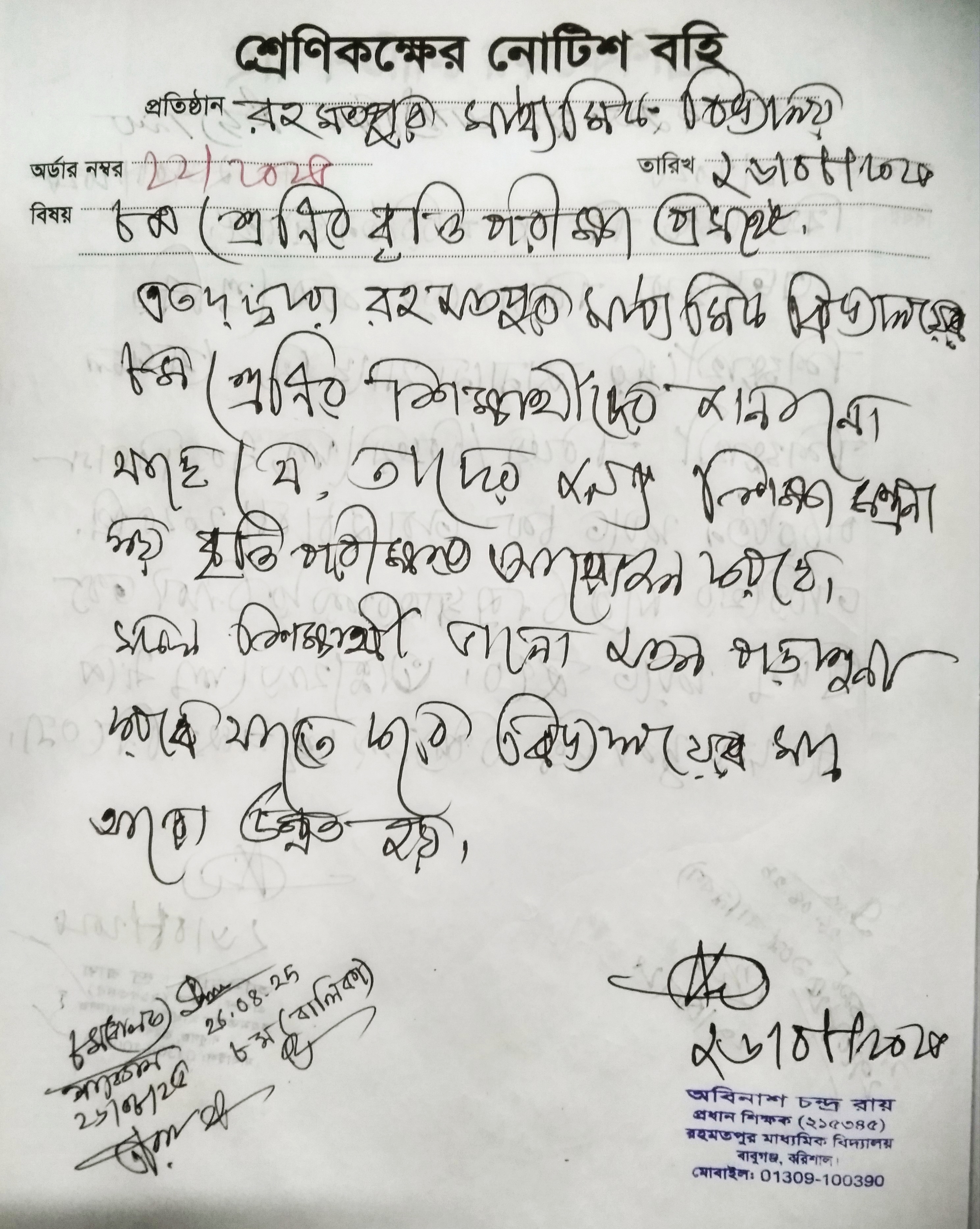 ৮ম শ্রেণীর বৃত্তি পরীক্ষার নোটিশ27-Aug-2025 |